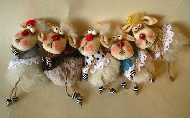 С лета в интернете наблюдаю повальное шитьё овечек и барашков ,кто во что горазд ....каких только не встретишь,я особо понравившихся складывала в папочку. Осенью я узнала ,что в декабре, в моём городе будет выставка и решила для гостей и жителей своего города нашить симпатичных..немного сумасшедших, с долей юмора персонажей. Образы складывались из того ,что видела в интернете .Поэтому не кидайте в меня тапками ,если кто-то увидит здесь свои наработки...честно признаюсь ,что от себя добавляла совсем немного ....такие морды увидела у Татьяны Белозёровой.....